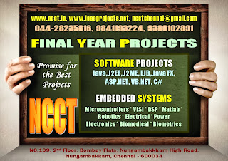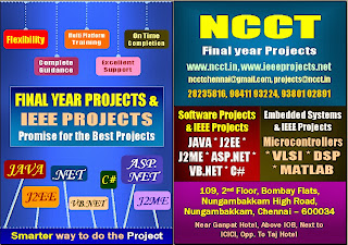 Final Year Projects, Final Year IEEE Projects for ECE,Final Year IEEE Projects for CSE, Final Year IEEE Projects for EEE, Final Year IEEE Projects on Java, Final Year IEEE Projects on Dotnet, Final Year IEEE Projects on Embedded Systems, Final Year Projects on Matlab, Final Year Projects on Vlsi, IEEE Projects for IT Final Year Students, Final Year Projects BE BTECH, Final Year Projects for MCA, Final Year Projects Titles Abstracts Reports Sourcecode, ncct.in, 044-28235816, ncctchennai@gmail.com